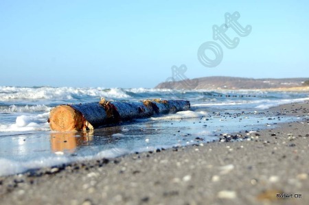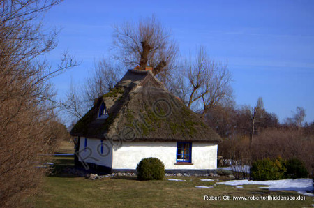 Häuschen am Klausner und die Kalte Ostsee im Hintergrund.