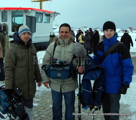 Tv-Team kommt von der Görmitz zu Fuß.(vom ZDF)
